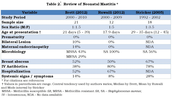| 9. | Ruwaili NA, Scolnik D. Neonatal mastitis - controversies in management. J Clin Neonatol. 2012; 1: 207-10. |