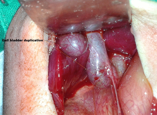 Figure 1: Intra-operative picture showing duplication of gall bladder |