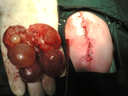 Figure 2: Right multicystic kidney and closure of omphalocele |
