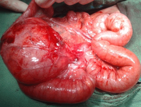 Figure 4: Communicating cystic duplication of the terminal ileum. |