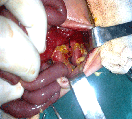 Figure 1: Focal perforation site on the 1/3 distal part of sigmoid colon |