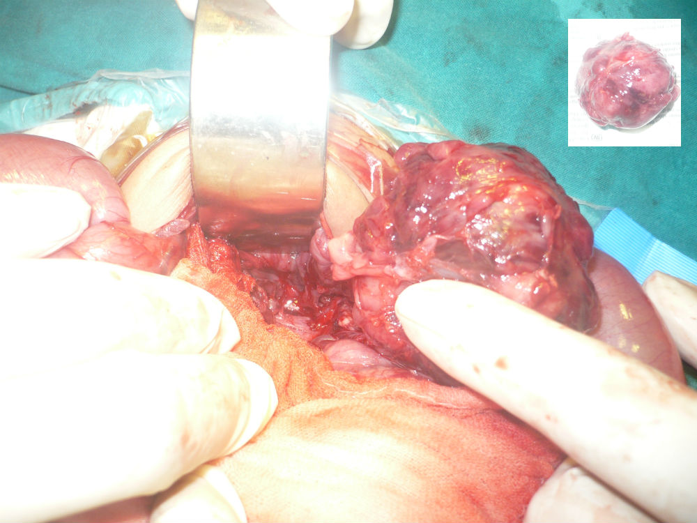 Figure 3: Presacral neuroblastoma. Inset shows complete excision. |